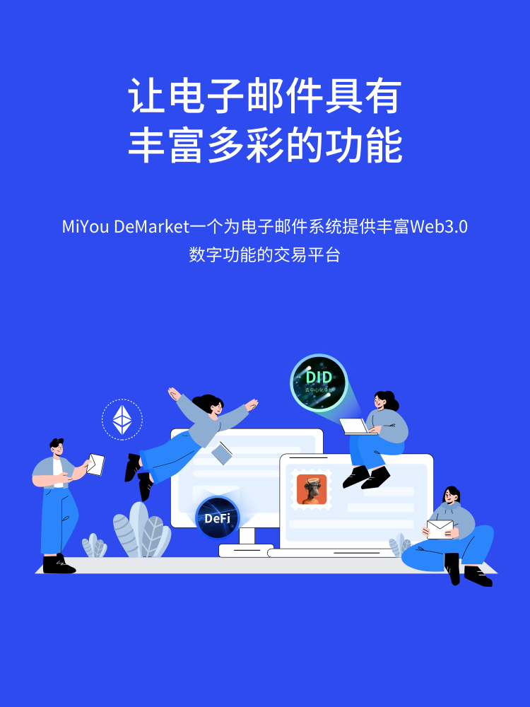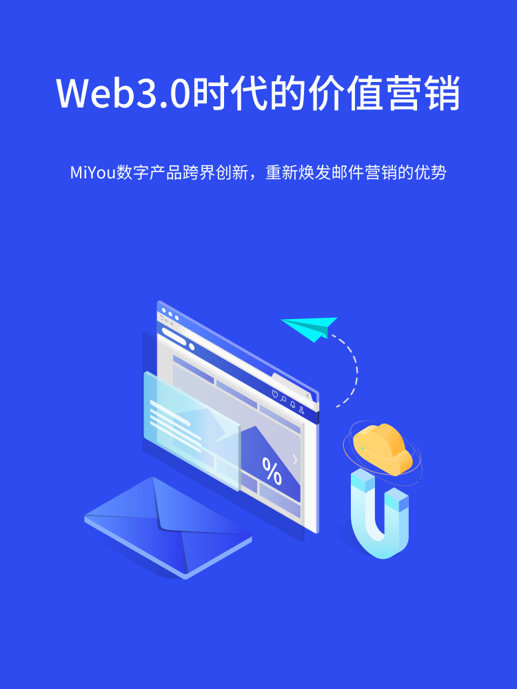 营销服务 数字NFT赋予新时代更多的价值,让企业与用户享受属于自己的价值。 MiYou市场,MiYou DeMarket,Web3邮件订阅,数字邮票、数字门票、数字证书,让大家可以体验丰富多彩的数字功能。