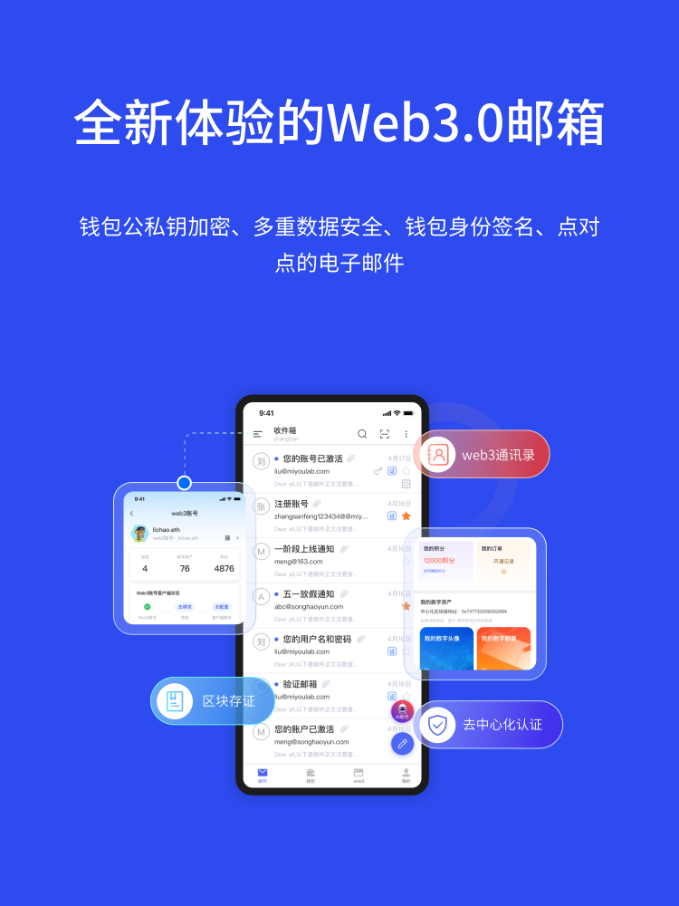 你将体验到基于区块链技术的Web3.0邮箱带来邮件加密、数据保全、价值传递等时代性的功能。